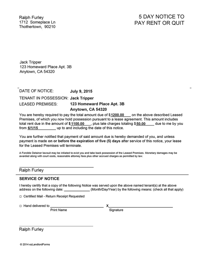 Notice To Pay Rent Or Quit Ezlandlordforms
